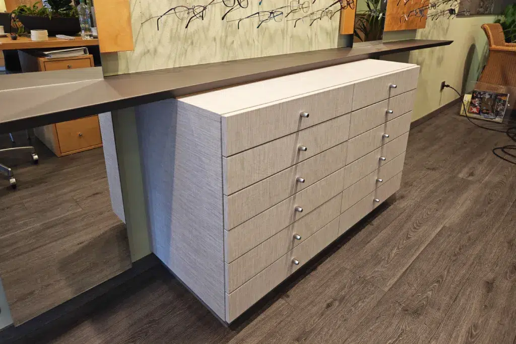 Statt Neuanschaffung werden bestehende Möbel professionell veredelt. Das spart Kosten, schont Ressourcen und sorgt dennoch für ein hochwertiges, zeitgemäßes Erscheinungsbild.